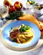 Add 1 tablespoon of oil to the pan. Add the onions, garlic and vegetables to the frying fat and fry vigorously while turning. Season with salt and pepper. Add tomato paste and sauté. Deglaze with 1/2 litre water, bring to the boil and simmer covered for 4-5 minutes. Add cream, bring to the boil. Bind with sauce thickener, bring to the boil. Add meat, heat and season with salt and pepper