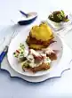 Fry the mushrooms and onion in the frying fat. Season with salt and pepper. Wash herbs and chop finely. Mix with sour cream and season with a little salt.