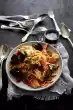 Season everything with salt and pepper. Place the fish on the vegetables and let it stand for a short time. If necessary, sprinkle with coarse pepper and garnish with the rest of rosemary. Goes well with baguette