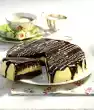 Whisk the warm butter with the whisk of the hand mixer until white-creamy. Stir the pudding until smooth. Stir in tablespoons bit by bit. Cut the sponge cake base in half horizontally. Place a cake ring around the lower cake base. Spread half of the cream on top and smooth it down. Place the meringue base on top. Spread the rest of the cream on top. Finish with the top, dark cake base and chill for about 2 hours.