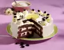 Mix starch and 3 tablespoons of cherry juice until smooth. Bring the rest of the cherry juice, 1 packet of vanilla sugar and lemon zest to the boil, remove from the heat. Stir in the starch and simmer for another 2 minutes. Remove lemon zest and add cherries. Pour the stewed cherries immediately onto the base and smooth them down. Place the second base on top and let it cool down. Soak 9 sheets of gelatine in cold water. Beat the yoghurt and 75 g sugar until creamy. Stir in 100 ml advocaat. Squeeze the gelatine well and dissolve at lukewarm temperature. Remove 2-3 tablespoons of yoghurt mass and mix with the liquid gelatine. Stir the gelatine mixture into the remaining yoghurt mass. Whip 100 g cream until stiff. When the liqueur mass begins to gel (approx. 10 minutes), fold in the cream. Spread the cream on the 2nd base. Place the last base on top. Chill for about 4 hours.