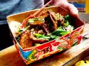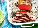 Push the roast veal onto the lower slide-in strip. Slide the pork and turkey fillets onto the middle rack and fry everything for about 1 hour. After about 30 minutes, change the baking trays once.