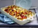 Preheat oven (electric cooker: 200 °C/circulating air: 180 °C/gas: see manufacturer). Clean and wash the zucchini, cut in half lengthwise and scrape out the seeds with a teaspoon. Place the courgettes side by side in a large casserole dish or in the fat pan of the oven (deep baking tray; approx. 32 x 39 cm).
