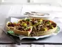 Mix all ingredients, season vinegar with salt, pepper and sugar. Cut feta cheese into 12 pieces. Cut wooden skewers in half and put 1 skewer in 1 piece of cheese each. Season with pepper and drizzle with 2 tablespoons of oil. Arrange cheese sticks on the salad