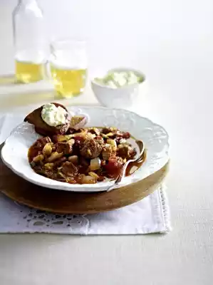Rinse the beans in a sieve and let them drain. Add to the meat and heat. Season well with salt, pepper and chilli. Serve the toasted bread and avocado cream with the beans. Drink tip: beer, e.g.