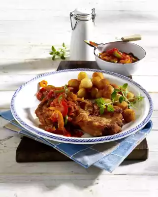 Keep ready cutlets warm. Arrange schnitzel, sauce and potato balls on plates. Garnish with marjoram.