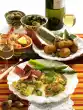 Puree the soup. Stir in the cream. Season to taste with Tabasco and sugar. Serve with vegetable cubes