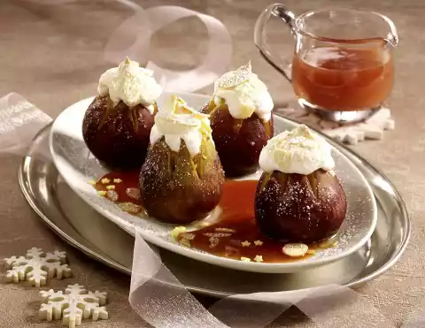 Bake in a hot oven for 5-8 minutes. Serve the orange sauce with the figs. Possibly sprinkle with sugar stars.