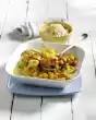 Peel, wash and cut the potatoes into pieces. Cook in boiling salted water for about 20 minutes. Wash the meat, dab dry and season with salt and pepper. Heat 2 tablespoons of oil in a frying pan, fry the chicken fillets all around, remove.