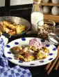 Beat the egg white and 1 pinch of salt until stiff and fold in. Grease 4 normal coffee cups and sprinkle with breadcrumbs. Place crépes in the cup, overlapping the edges. Pour the curd mixture into the crépes up to the rim of the cup.