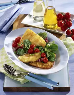 Peel and finely chop the onion. Mix with vinegar, salt, pepper and sugar. Whip 2 tablespoons of oil into it. Clean, wash and drain the salads. Wash and halve the tomatoes. Mix both with the salad dressing