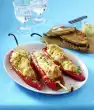 Cut zucchini at the base of the stem in a fan shape. Fill the zucchini flowers with one tablespoon of ricotta mixture each and twist the flower tips together over the filling. Wash the lemon, grate dry and cut in half.