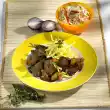 Remove, season with salt and pepper and keep warm. Sauté onion and rosemary in frying fat. Add 75 g blueberries and maple syrup, deglaze with 200 ml water and vinegar. Let simmer for 5-8 minutes at high heat. Add 125 g blueberries and heat up briefly. Season potatoes and sauce with salt and pepper. Serve steaks with mushrooms, sauce and potatoes. Serve with rosemary set aside