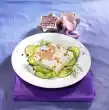 Season with salt and drain on a kitchen towel. In the meantime wash the apple, quarter it and remove the seeds. Cut into slices. Steam apple slices in a pot with 50 ml water and lemon juice for 2 minutes, drain and let drain.