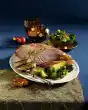 Meanwhile cook the broccoli in boiling salted water for about 6 minutes. Drain and sprinkle with almonds. Cut the pork fillet open, arrange everything.