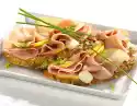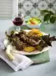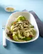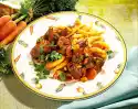 Add tomatoes. Simmer at high heat for about 2 minutes. Season to taste. Drain the pasta and turn into nests. Arrange everything on plates and garnish with parsley.