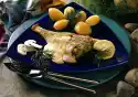 Sprinkle fish fillets with remaining herbs, garnish with lemon slice and parsley.