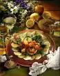 Shrimps loosen, cut at the back and remove the intestines. Fry in hot butter for 2-3 minutes. Season. Arrange on the salad. Sprinkle with sesame seeds