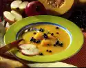 Remove thyme. Finely puree the soup, season with salt and pepper. Add 110 g crème fraîche. Arrange soup in bowls. Put 1 blob (10 g each) of crème fraiche in each bowl. Spread vegetable cubes on top and sprinkle with pepper.