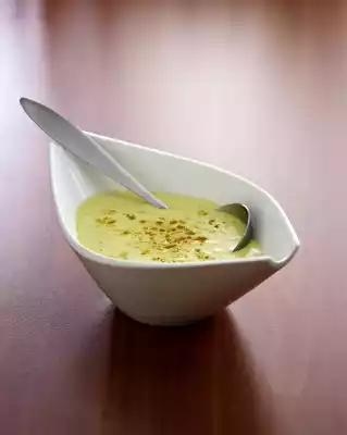 Peel and finely chop the onion. Heat the butter and fry the onion until transparent. Sprinkle with curry and flour and sauté briefly. Stir in milk and bring to the boil. Add vegetable stock (instant) and simmer for about 5 minutes at medium heat.