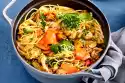 Wash lemons hot, dab dry and cut into thin slices. Clean and wash the zucchini and spring onions. Cut the courgettes into slices and the spring onions into pieces. Wash thyme and shake dry. Rinse fish cold, dab dry and cut into 4 equal pieces.