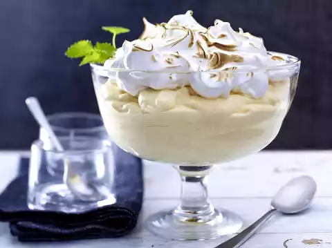 Scarf the surface with a kitchen gas burner until golden brown. (Careful! The meringue burns very quickly!).