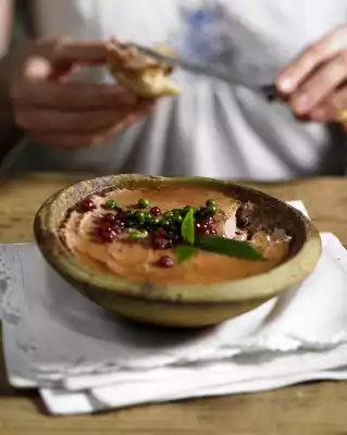 Chop the peppercorns. Mix both with liverwurst, cream and 2 tablespoons of port wine. Then spread them in a bowl and put them in a cool place.
