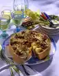 Wash the chives and cut into fine rolls. Grease a springform pan (26 cm Ø) and layer 1/3 of the macaroni on the bottom. Sprinkle 1/3 of the vegetables on top and again 1/3 of the pasta, vegetables and noodles.