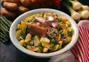 Cut the roast pork into strips about 3 cm long. Wash apples, quarter, core and cut into thin slices. Squeeze 1 lemon and drizzle the juice immediately over the apple slices to prevent them from turning brown.