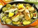 Peel, wash and slice the potatoes. Put potato slices in boiling salted water and cook for about 5 minutes. Pour potatoes onto a sieve and drain. Wash the plaice fillets, dab dry and halve lengthwise.