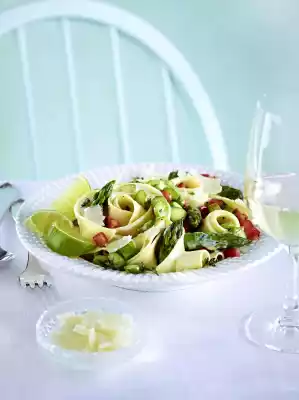 Take off some pasta water. Slice the parmesan. Pour the pasta into a sieve and drain. Put them back into the pot with the sauce and tomatoes, toss through, possibly dilute with some pasta water. Season pasta again, arrange with lime wedges and sprinkle with parmesan