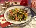 In the meantime, put ribbon noodles in boiling salted water and cook for 5 minutes. Wash the parsley, dab dry and chop finely, except for something to garnish. Drain noodles and arrange on plates.
