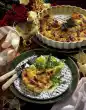 Layer sauce, diced vegetables, lasagne sheets, spinach and eggplant slices in an ovenproof casserole dish. Wash the cherry tomatoes, cut them into slices and place them on top. Sprinkle with cheese. Bake in a preheated oven (electric cooker: 200 °C/ convection oven: 175 °C/ gas: level 3) for approx. 45 minutes. Cover after 30 minutes if necessary. Take out and serve garnished with fresh oregano