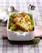 Spread butter-horseradish crumbs on top. Bake in the preheated oven (electric cooker: 200 °C/ convection oven: 175 °C/ gas: level 3) for 20-25 minutes. Baguette bread tastes good with it.