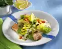 In the meantime, heat 2 tablespoons of oil in a pan and fry the fish for 3-4 minutes on each side until golden brown. Take out. Season lentil vegetables with salt, pepper and a few drops of lemon juice. Arrange lentil vegetables and fish on a plate.