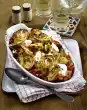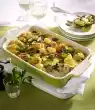 Fry the onions and zucchini in hot oil for 3-4 minutes. Fry the tomatoes, garlic and herbs for about 2 minutes. Season with salt and pepper. Put into a large casserole dish
