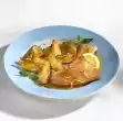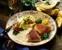 Drain spaghetti and let it drain. Mix the spaghetti, peppers, spring onions and peas with the vinaigrette. Season with salt and pepper if necessary. Fry the fish fillets in a hot pan for 8-10 minutes from both sides. Arrange the spaghetti salad with the fish fillets on a plate. Sprinkle fish fillets with herbs