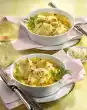 Cook spaghetti in salted water for about 8 minutes until al dente. In the meantime clean, wash and cut the peppers into large cubes. Clean, wash and cut spring onions lengthwise into fine strips. Bring salt water to the boil. Blanch spring onions and peas briefly.