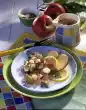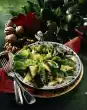 Wash the potatoes and cook in boiling salted water for about 20 minutes. Drain potatoes, quench, peel and let cool. Cut larger potatoes in half. Peel the cucumber, cut in half lengthwise and cut into slices. Clean, wash, halve and slice radishes.