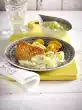 Heat 3 tablespoons of oil in a frying pan. Fry the fish skewers for 3-4 minutes on each side. Season potato salad to taste. Arrange everything.