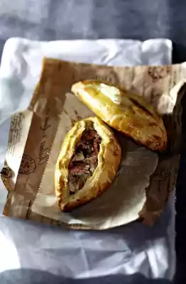 Place 7 pieces on each of two baking trays lined with baking paper. Whisk the egg yolks and 1-2 tsp. cold water. Spread a thin layer on the parcel. Bake in the preheated oven (electric cooker: 200 °C/ convection oven: 175 °C/ gas: see manufacturer) one after the other for about 30 minutes. Take out, serve hot or cold