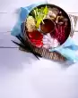 Roll out the dough on a floured work surface to a thickness of approx. 1/2 cm, cut out 14 circles (approx. 15 cm Ø) and knead the rest again and again. Place the circles next to each other and put a blob of sour cream on each, leaving a rim of about 3 cm all around. Spread the salmon strips, pine nuts, capers and dill on top. Press the edges of the dough firmly together over the filling