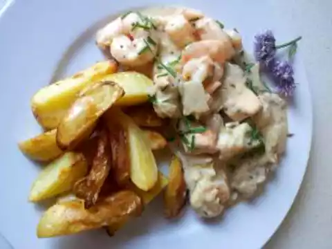 Add the fish and prawns to the Chinese cabbage, add the cream cheese and mustard and the Weight Watchers sauce (pour a little water on if necessary) and let it cook for another 5 minutes at low heat.