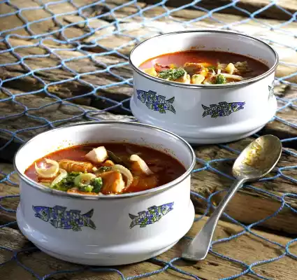Season to taste with salt and pepper. Season soup with lemon juice, sugar, salt and pepper. Serve together with the pistou.
