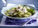 Bring the sauce to the boil and season to taste with a little lemon juice. Arrange the rice, fish rolls and apple slices on a plate, drizzle with the sauce and sprinkle with the remaining parsley