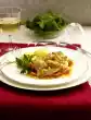 Peel and chop the shallot. Boil up with stock, wine and spices. Let the fish fillets simmer for about 6 minutes at low heat. Serve with sauce