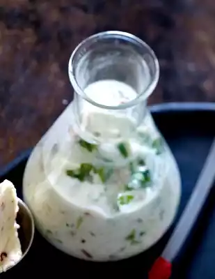 Halve the avocado, remove the core, remove the flesh from the skin and crush finely with a fork. Mix whole milk yoghurt, avocado, tomatoes, garlic, coriander, juice from 1⁄2 lemon and chili.