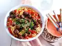 Add the pasta to the boiling salted water and cook according to the instructions on the packet. In the meantime heat the oil in a large pan. Brown the meat in it for about 5 minutes, remove it. Sauté the pepper, onion and garlic in the hot frying fat for about 3 minutes. Stir in tomatoes and sour cream, bring to the boil. Season with salt and 1-2 teaspoons taco spice mixture. Add meat and warm up again.