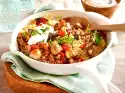 Peel the onion. Clean and wash the fennel and chard. Cut onion, fennel and chard stems into fine strips, chard leaves into wide strips.