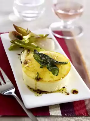 Remove the flans from the oven and bain-marie and let them cool down for about 15 minutes. In the meantime, bake spring onions in a preheated oven (electric cooker: 200 °C/ circulating air: 175 °C/ gas: see manufacturer) for 10-15 minutes, turning occasionally. Remove the flanges from the tins and arrange on plates. Add the onion confits and serve